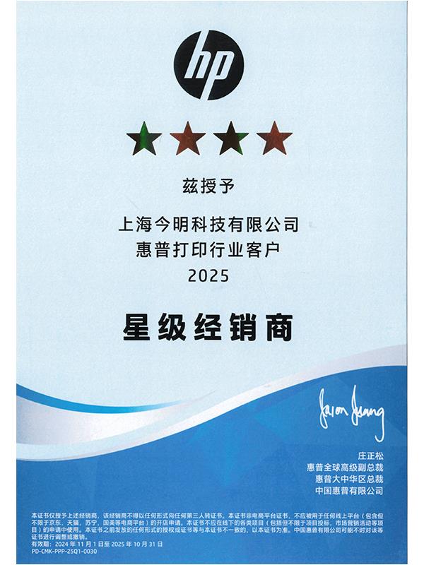 2025年惠普打印機(jī)星級(jí)經(jīng)銷(xiāo)商